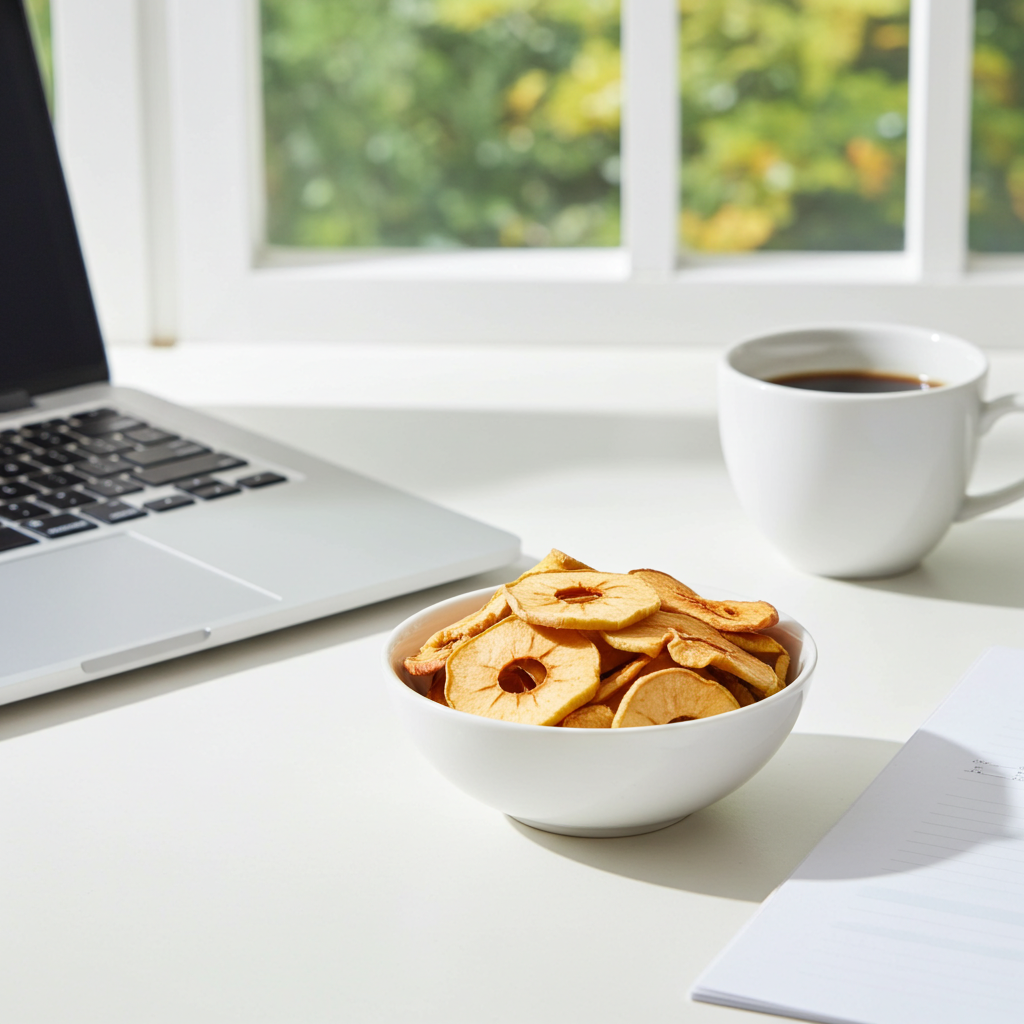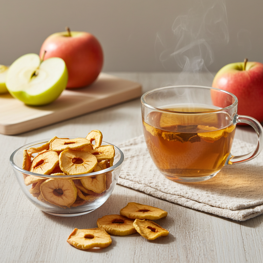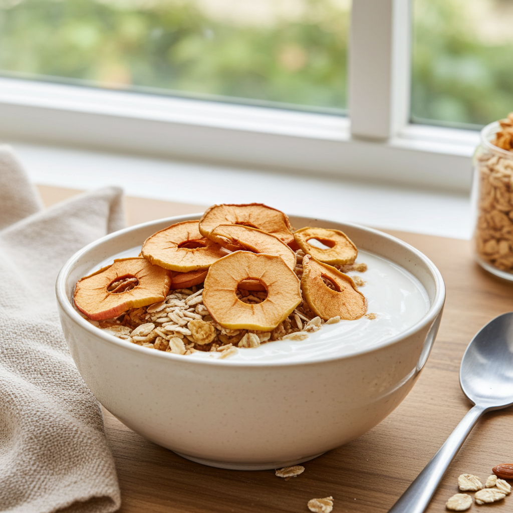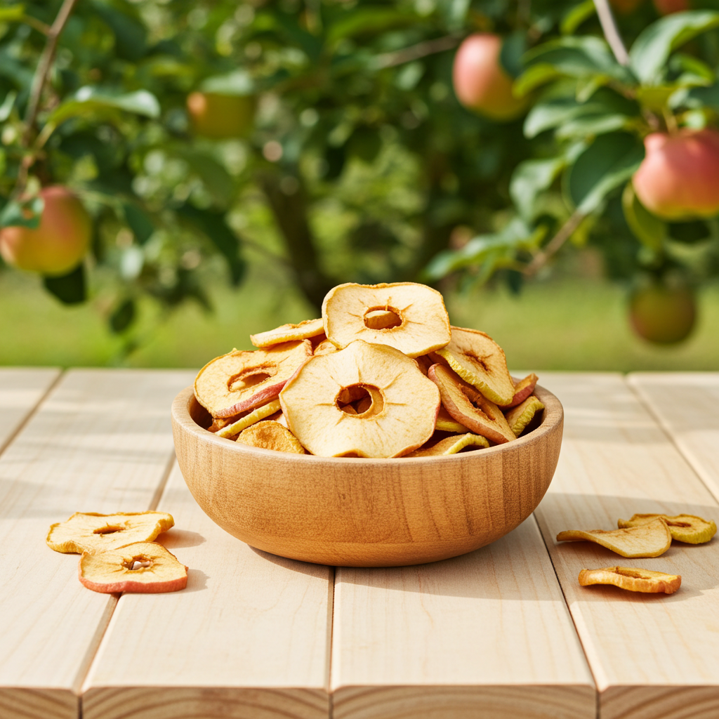 Getrocknete Apfelringe und auch als Apfelchips sind ein besonders leckerer Snack für zwischendurch. Ihr fruchtiger Geschmack macht sie zu einer Alternative zu Süßigkeiten. Klein geschnitten eignen sie sich hervorragend als Zutat für Müsli oder Desserts.