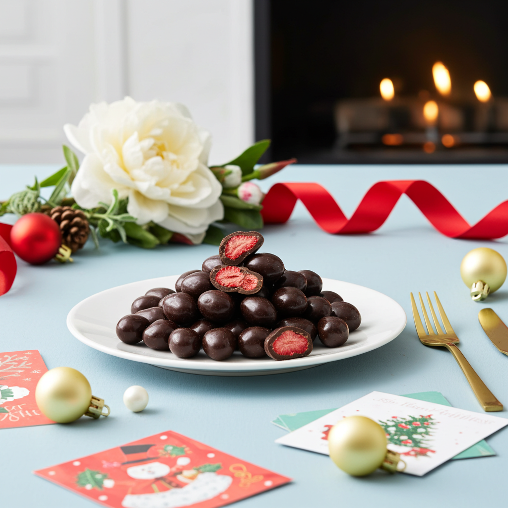 Erdbeeren gefriergetrocknet mit Zartbitter-Schokolade