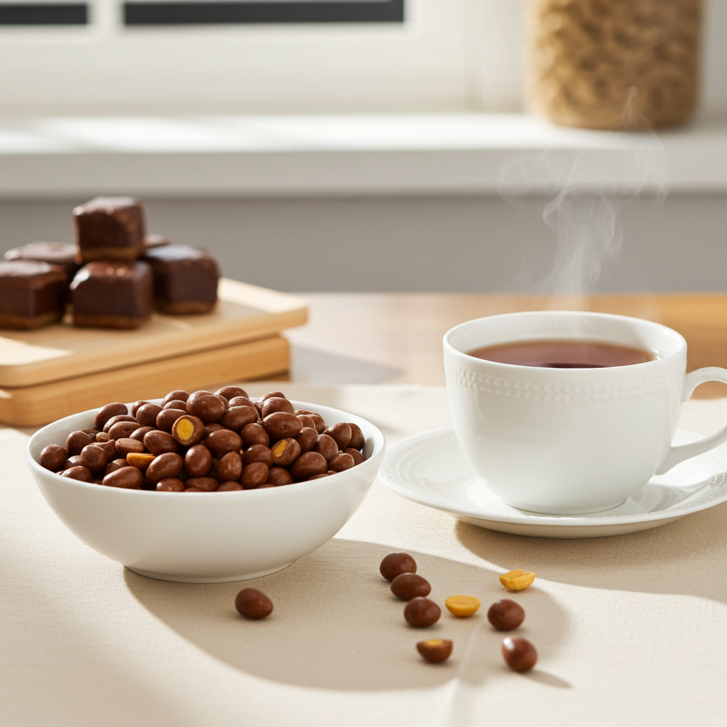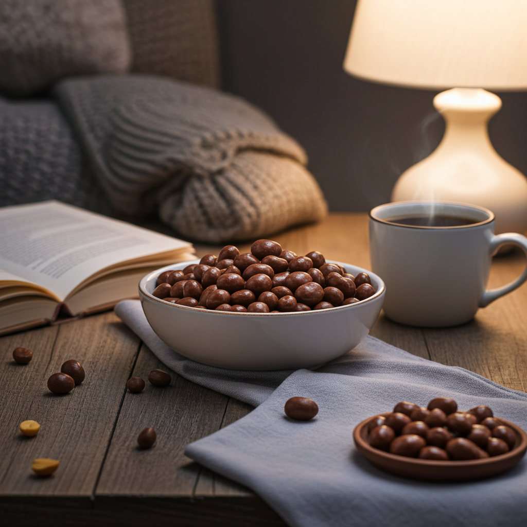 Ob Apfelringe, Bananenchips, Cranberries, Erdbeeren, Ingwer, Melonen ,Weinbeeren, sowie Mandeln oder Erdnüsse – mit einem Hauch Schokolade überzogen werden alle Trockenfrüchte und Nüsse noch unwiderstehlicher.