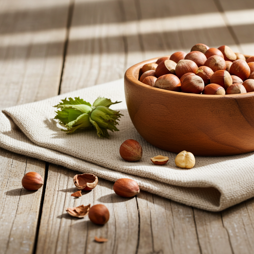 Haselnüsse sind die Früchte des rund fünf Meter hohen Haselstrauches, der zu den Birkengewächsen gehört. Dabei ist die Haselnuss anders als etwa die Erdnuss oder Walnuss eine „echte“ Nuss im botanischen Sinne. Haselnüsse sind in Europa und Kleinasien heimisch und wachsen heute auf der gesamten Nordhalbkugel. Die glockenförmige, dicke, verholzte Schale schließt einen einzelnen großen Samen ein, der den essbaren Teil der Nuss darstellt. Der Haselnusskern, der von einer ebenfalls genießbaren, bräunlichen Samenhaut umschlossen ist, wird schon seit Tausenden Jahren aufgrund seines guten Geschmacks verzehrt. Haselnüsse enthalten viele ungesättigte Fettsäuren, die Energie spenden, viel Magnesium, Phosphor, Kalium, Eisen und Calcium, Ballaststoffe und sekundäre Pflanzenstoffe. Darüber hinaus verfügen Haselnüsse über große Mengen an Vitamin E.